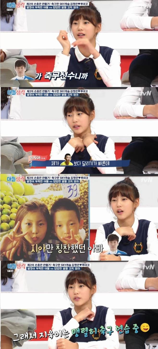 이에 10대 자문단 송지아는 아빠 송종국을 언급했다. 송지아는 “아빠가 축구선수니까 저와 동생 지욱이에게 축구를 가르쳐주셨다. 그런데 제가 지욱이보다 달리기가 더 빠르니까 저한테만 칭찬해 주셨다. 그랬더니 지욱이가 엄청 열심히 축구를 연습하고 있다”고 지욱이의 남다른 승부욕을 털어놨다.