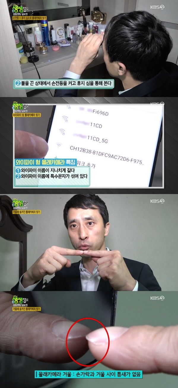 최근 방송된 교양프로그램 '2TV 생생정보' 속 코너 '생활꿀팁 넘버원'에서는 최근 기승을 부리고 있는 몰래카메라를 찾는 팁이 전파를 탔다.