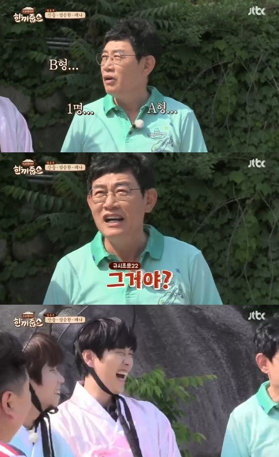 이경규는 "내가 그랬어?"라며 전혀 기억하지 못하는 모습이었다. 이내 이경규는 B형 1명과 A형 4명의 멤버로 이뤄진 B1A4 팀명을 떠올려냈다. 굴욕을 맛본 산들은 큰 소리로 웃으며 상황을 넘겼다.