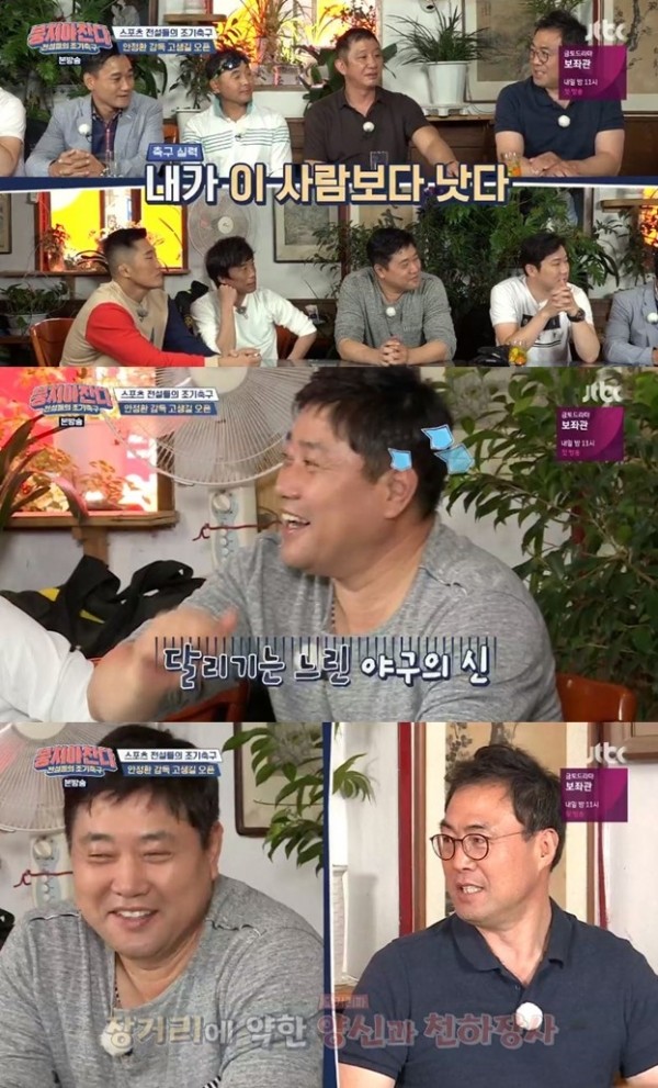 최근 방송된 JTBC '뭉쳐야찬다’에는 안정환, 김용만, 김성주, 정형돈, 이만기, 허재, 양준혁, 이봉주, 여홍철, 심권호, 진종오, 김동현이 출연했다.