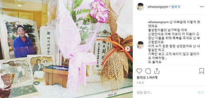 사진에는 납골당에 안치된 휘성 아버지의 모습이 담겨 눈길을 모았다.