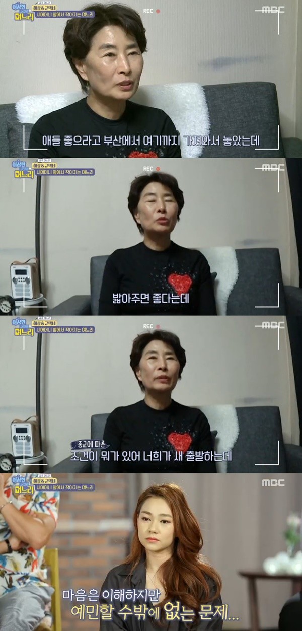 이를 들은 안혜상은 난감해하는 모습을 보였다. 시어머니는 "너희 다 잘되라고 지내려고 하려는 거였다. 이런 마음을 이해해줬으면 좋겠다"며 "내 고집대로 모두 하려는 건 아니다"라고 덧붙였다.