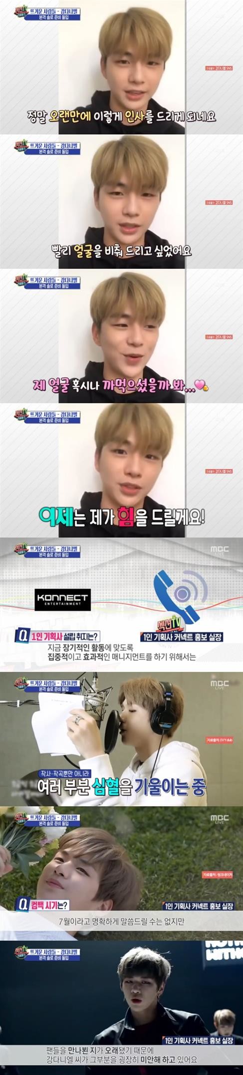 이날 제작진은 얼마 전 공개된 강다니엘의 SNS 영상을 공개했다. 영상 속 강다니엘은 “안녕하세요. 여려분. 정말 오랜만에 인사를 드립니다”라며 “제가 여러분들에게 얼굴을 비춰드리고 싶었어요. 제 얼굴 혹시나 까먹으셨을까봐”라고 말문을 열었다.