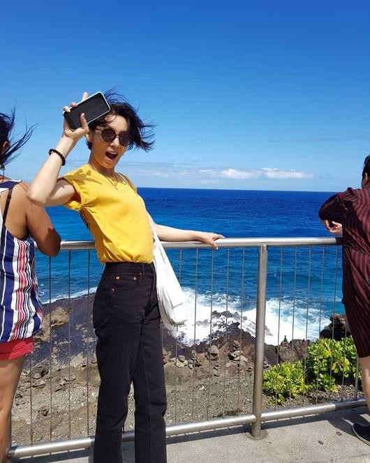 공개된 사진 속 김서형은 바다를 배경으로 포즈를 취하고 있다.