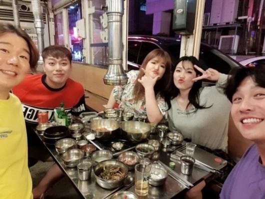 공개된 사진 속 이국주는 '코미디빅리그' 식구들과 함께 고기집에서 소고기 회식을 하고 있는 모습이다. 동료 개그맨들과 함께 친목을 나누고 있는 모습이 훈훈함을 자아낸다.