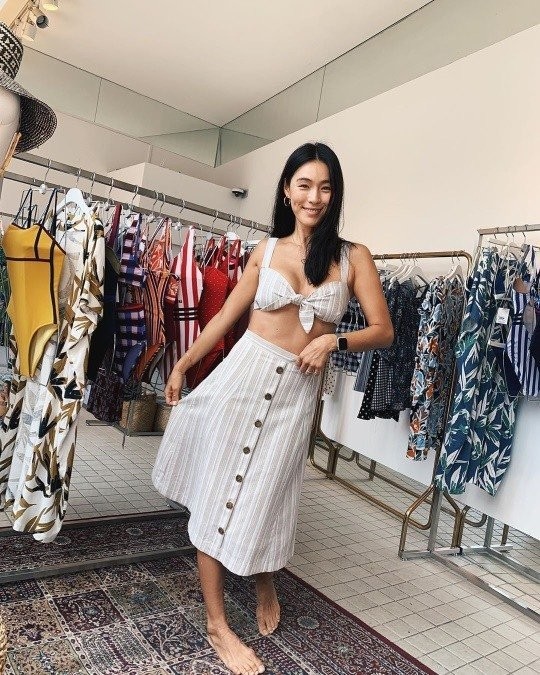 공개된 사진 속 가희는 비치 웨어를 입고 포즈를 취하고 있다. 가희는 리본 디테일이 귀여운 브라톱을 입고 환한 미소를 지어보여 시선을 사로잡았다.