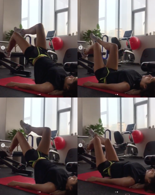 이와 함께 운동 영상도 게재했다. 영상에서 김빈우는 매트 위에 누워 기구에 다리를 얹은 채 복식호흡과 함께 하체 운동을 하고 있다. 뱃살이 들어가고 허벅지가 탄탄해지는 운동으로 자신의 매끈한 보디라인을 뽐내고 있다.