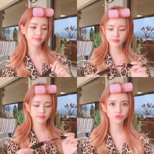 공개된 사진 속 큐리는 헤어롤을 말고 카메라를 응시하는 모습이다.