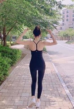 공개된 사진 속 김윤지는 운동복 차림으로 길을 걷고 있다.