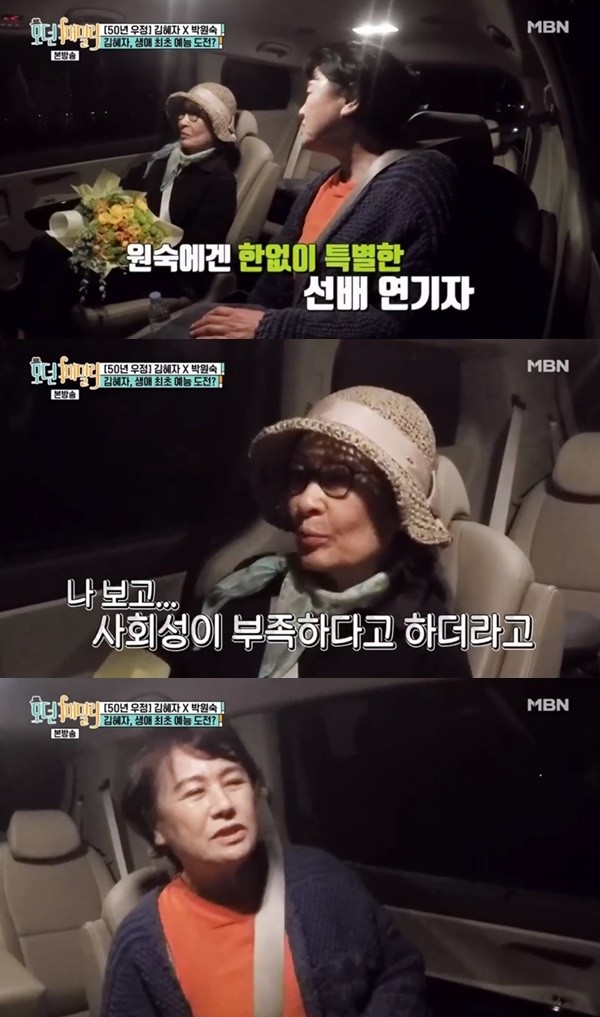 박원숙은 "그게 더 전달이 잘됐어. 언니는 연기할 때 더욱 빛이나"라고 칭찬했다. 이어 "언니는 선배고 연기자지만, 다른 배우들과 결이 달라"라고 표현했다.