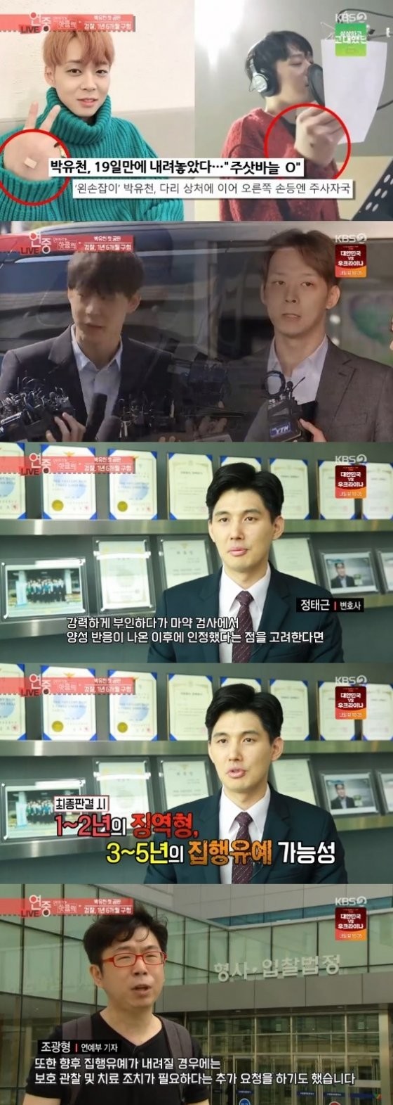최근 방송된 KBS 2TV 예능 프로그램 '연예가중계'에서는 박유천이 마약 투약 혐의를 모두 시인했다며 첫 공판 현장을 전했다.