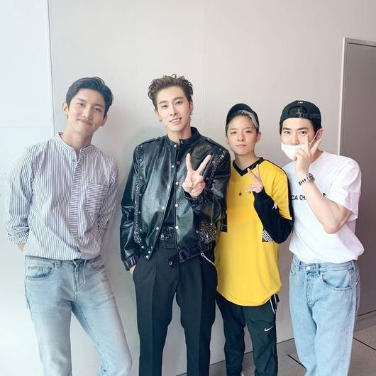사진 속에는 MBC '쇼 음악중심'에서 솔로 무대를 펼치는 유노윤호와 그를 응원하기 위해 온 최강창민, 엑소의 수호, 에프엑스의 엠버가 함께 포즈를 취하고 있는 모습이 담겨 있다. 이들의 끈끈한 우정이 훈훈함을 자아낸다.