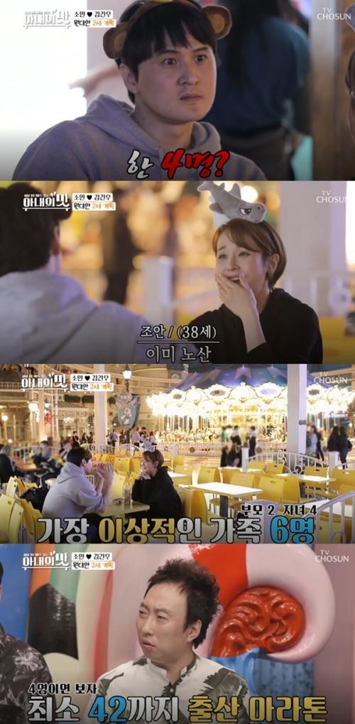 조안은 "아가 얼른 갖고 싶지 않냐"고 말하자 김건우는 "한 네 명 갖고 싶다"고 답했다.