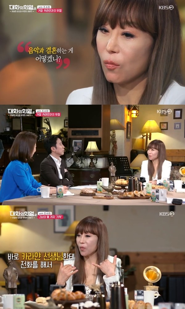 오스트리아의 국민 음악가인 카라얀과의 우정을 털어놓은 조수미는 "지금까지 음악가 조수미를 있게 한 카라얀이 남긴 가르침이 있냐"는 질문에 "어머니와 비슷한 말씀을 하셨다 . 음악과 결혼하는 게 어떻겠냐고"라고 운을 뗐다.