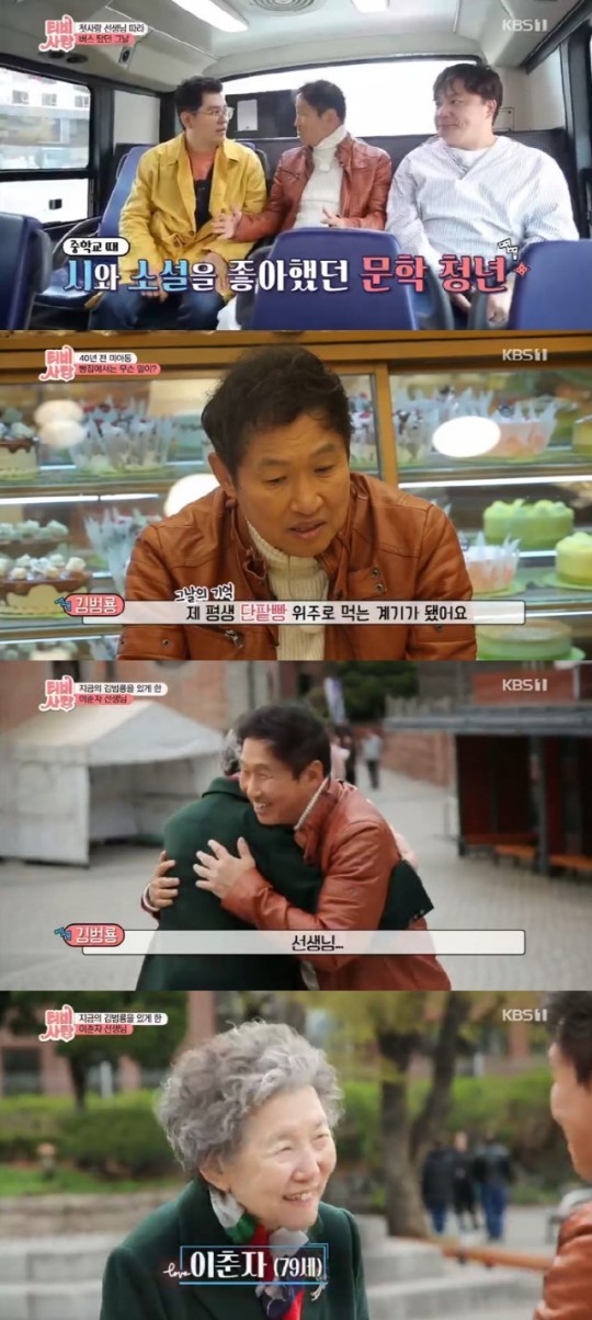 두 사람은 추억의 옛날 통닭집으로 향했다. 이춘자 선생님은 김범룡을 "예의가 바른 학생"으로 기억했다. 김범룡은 선생님을 위해 직접 쓴 시와 그림을 선물했다. 김범룡은 "살아계셔서 좋다. 선생님의 건강이 걱정됐다"며 "건강하게 오래오래 사셔서 제 인생의 지침으로 계속 계셔달라"고 당부했다.