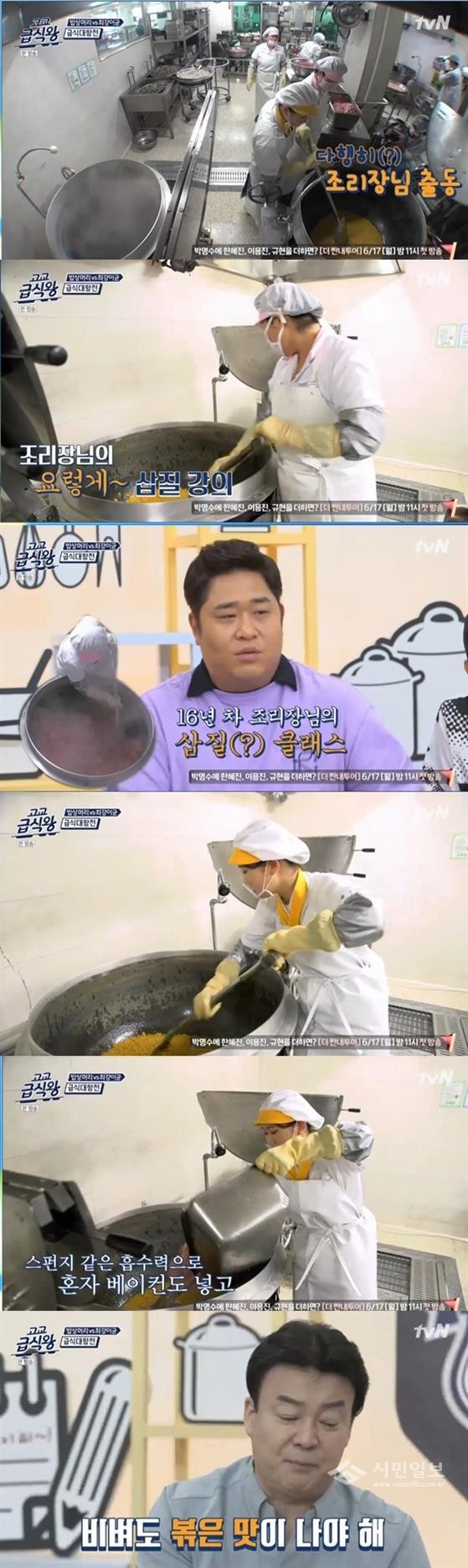 하지만 조리실에는 학생들을 도와줄 베태랑 조리장님이 있었다. 경력 16년 차의 조리장은 학생의 서툰 모습에 직접 시범을 보이며 도구 활용 방법을 알려줬다.