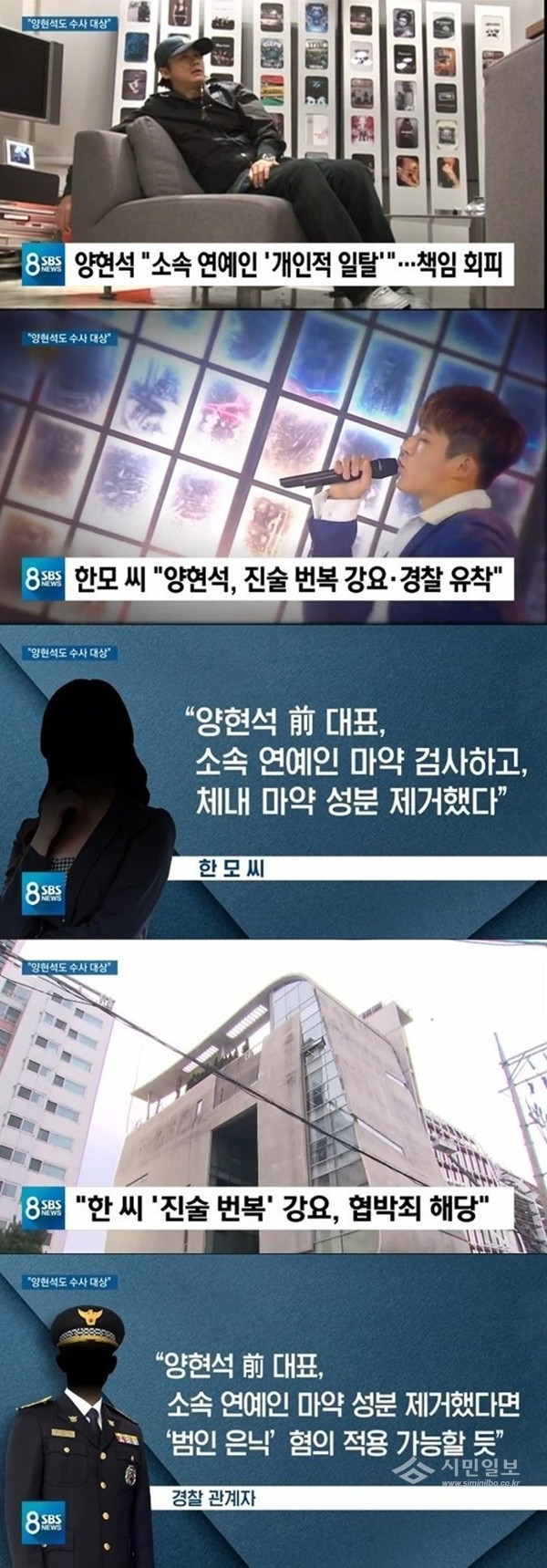 이어 "앙현석 전 대표는 소속 연예인의 개인적 일탈이라며 선을 그었다. 그러나 최근 아이콘 전 멤버 비아이 마약 의혹을 폭로한 한 모씨는 과거 경찰 수사 당시 양현석 전 대표가 자신의 진술 번복을 강요하고 경찰과 유착해해 수사를 무마했다고 주장했다"고 보도했다.