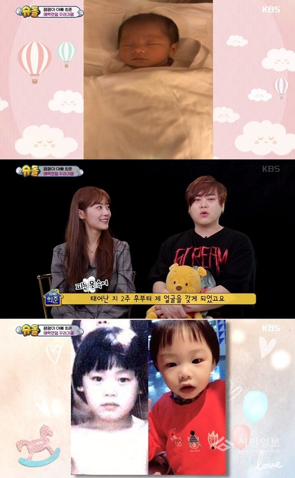 문희준의 어린 시절과 희율이의 사진을 비교해보니 붕어빵처럼 닮은 모습이었다.