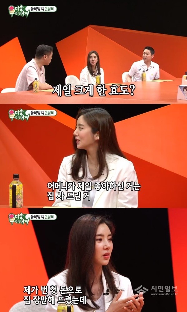 이에 손담비는 "어머니가 가장 좋아하신 효도는 집을 사드린 일"이라며 "제가 번 첫 돈으로 집 장만해 드렸는데 정말 좋아하시더라"고 말해 놀라움을 자아냈다.