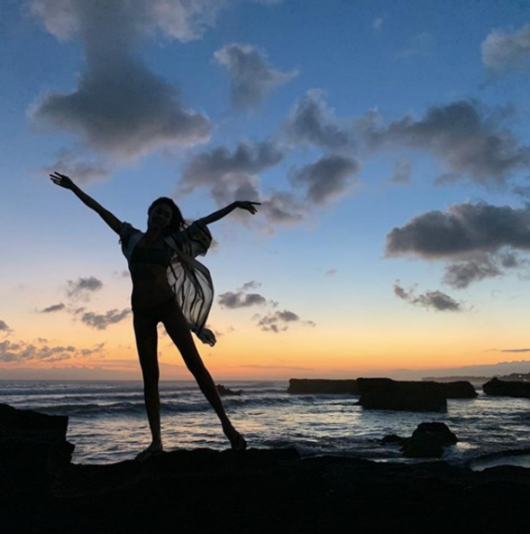 공개된 사진에는 노을진 바다를 배경으로 포즈를 취하고 있는 한혜진의 모습이 담겨 있다. 한혜진은 양 팔을 벌리고 바람을 맞으며 멋진 사진을 완성해냈다.