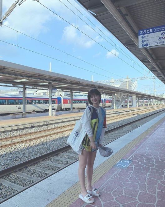 공개된 사진 속 김유정은 기차역에 서서 귀엽게 포즈를 취하고 있는 모습. 최근 파격 변신한 단발 머리를 사랑스럽게 소화한다. 오버핏 티셔츠에 하의실종 패션으로 시선을 사로잡는다.
