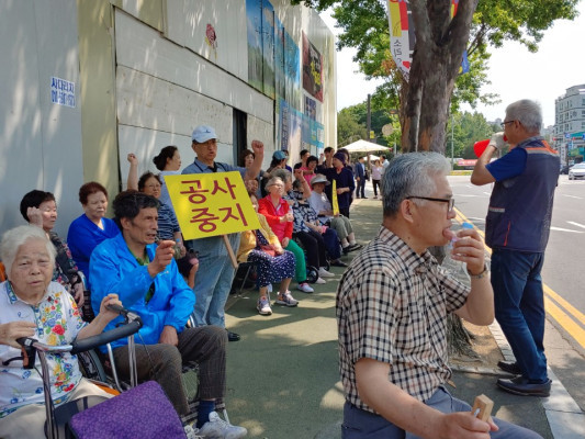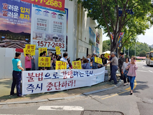 집회현장을 지켜 본 D개발 현장소장은 “공사 전에 상가번영회 측과 공사에 대해 합의하고 공사를 진행하는 만큼 집회를 하는 것은 이해를 할 수 없다”며 “민원이 있어 최대한 규정대로 시공하고 있는 만큼 건물공사 마무리가 얼마남지 않았으니 협조해 달라”고 당부했다.