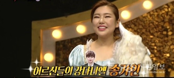가면을 벗은 샹들리에의 정체는 바로 '어르신들의 강다니엘'로 불리는 송가인이었다.