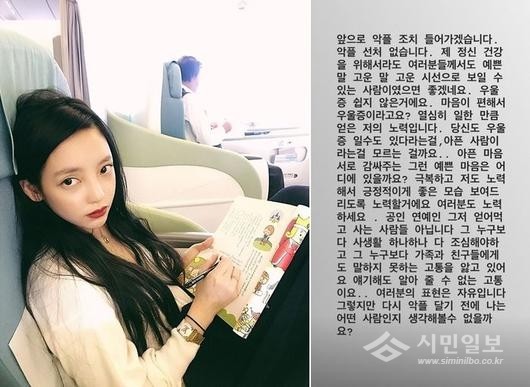 이어 "우울증 쉽지 않은 거예요. 마음이 편해서 우울증이라고요? 열심히 일한 만큼 얻은 저의 노력입니다. 당신도 우울증일 수도 있다는 걸, 아픈 사람이라는 걸 모르는 걸까요"라고 말했다.