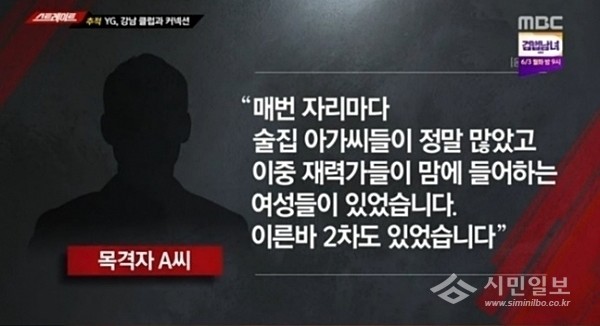 앞서 MBC 시사 프로그램 ‘탐사기획 스트레이트’는 지난 5월 27일 YG엔터테인먼트가 2014년 7월 동남아시아 재력가 2명에게 성접대를 제공했다는 의혹을 제기해 누리꾼들의 이목을 모은 바 있다.