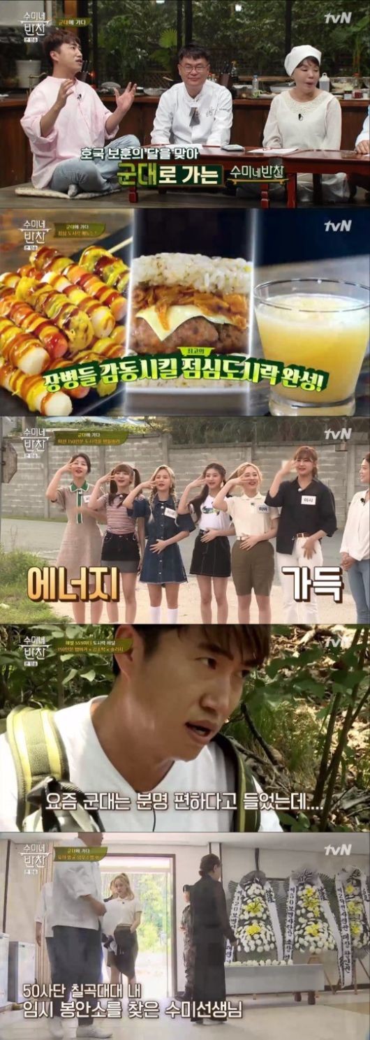 전날 19일 방송된 tvN 예능프로그램 '수미네 반찬'에서는 6월 호국 보훈의 달을 맞이해 김수미가 군부대로 가는 모습이 전파를 탔다.