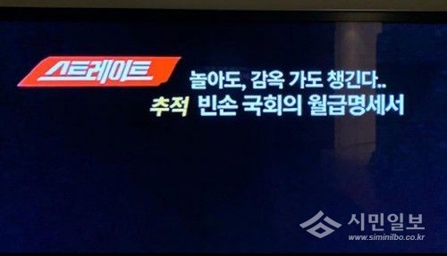 사진 속에는 '놀아도, 감옥 가도 챙긴다 빈손 국회의 월급명세서'라는 고발 내용이 담겨있다.