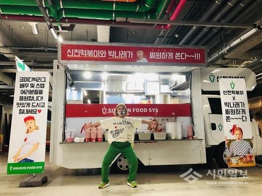 박나래는 18일 자신의 인스타그램에 "오늘 신전떡볶이 코미디빅리그 시원하게 쏜다. 오늘 아주 매콤하구나. 우리 개그맨들 든든허게 감사합니다. 진심 사랑합니다. 아주 맛남"이라는 글과 함께 한 장의 사진을 올렸다.