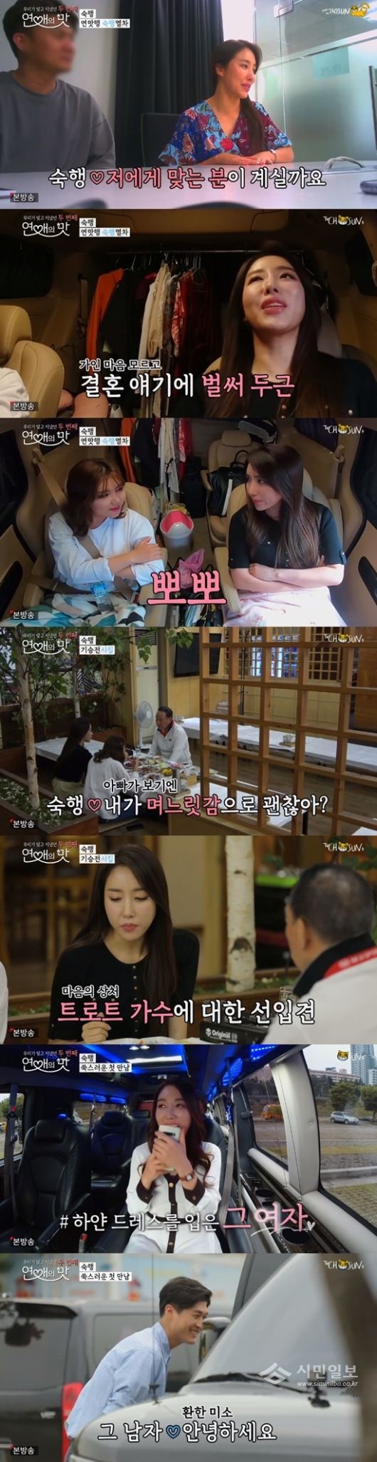 '미스트롯'에서 화려한 가창력으로 시선을 사로잡았던 숙행은 이날 '연애의 맛2'에서 소개팅에 나섰다.
