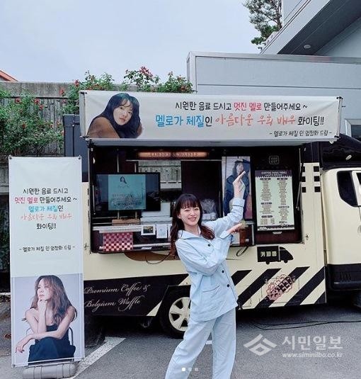 천우희는 19일 자신의 인스타그램에 "엄정화 선배님께서 멜로가 체질 현장에 커피차를 보내주셨다. 힘내서 촬영하겠다. 선배님 감사하다"라는 글과 함께 사진을 게재했다.