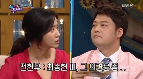 이어 “제 의견을 냈는데 전현무 씨가 ‘근데 최송현 씨 그 의견은..’이라며 태클을 걸더라. 내가 여기서 대답을 못하면 감점이 되지 않나”라며 “저 오빠가 날 싫어하는구나. 어떻게 단시간에 날 싫어하게 됐지 생각했다”고 털어놨다.