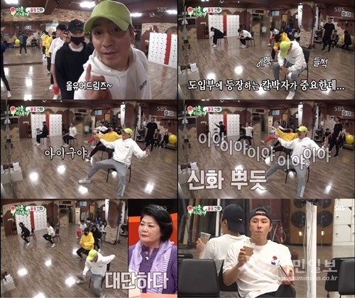 그러나 이내 김동완은 “음악이 이거 아니잖아”라며 오류를 찾아냈다. 제대로 된 음원을 틀고 안무가 맞아 떨어지자 신화 멤버들은 뿌듯함을 감추지 못하며 “이야”라고 외치 모두를 웃게 만들었다.