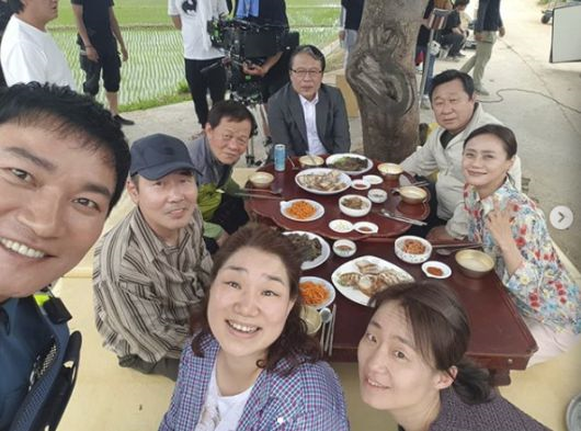 함께 올린 사진은 ‘구해줘2’ 촬영장에서 찍은 것. 사진에서 조재윤을 비롯한 천호진, 임하룡, 김영선, 김수진, 김미화, 이윤희, 우현은 한 상에 둘러 앉아 카메라를 바라보고 있다.