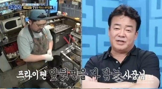 드디어 식당에 도착한 백종원은 사장과 반갑게 인사를 나누고는 개인 화구가 놓여있는 테이블을 인상 깊게 살펴봤다. 이어 사장의 추천 메뉴인 스테이크와 소떡꼬치, 소고기 튀김 시식에 나섰다.