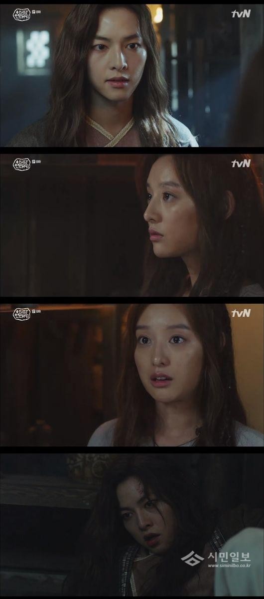 23일 방송된 tvN 주말드라마 '아스달 연대기'에서는 위기에 처한 은섬(송중기 분)의 모습이 그려졌다. 태알하는 사야에게 날을 세웠다. 아사론(이도경 분)을 죽이고 단벽(박병은 분)에게 죄를 뒤집어 씌우려 했지만 사야가 이를 방해한 것.
