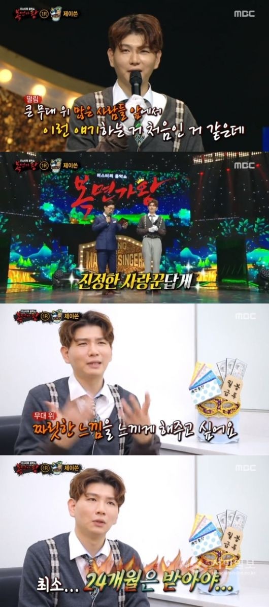 이후 제이쓴은 "제 와이프는 꼭 출연했으면 좋겠다. 그 짜릿함을 같이 느꼈으면 좋겠다. 그러려면 보컬 트레이닝을 24개월 받아야 한다. 제가 '결혼해줄래'라고 했으니까 답가를 들려주면 좋겠다. 너무 좋을 거 같다"라며 소감을 밝혔다.