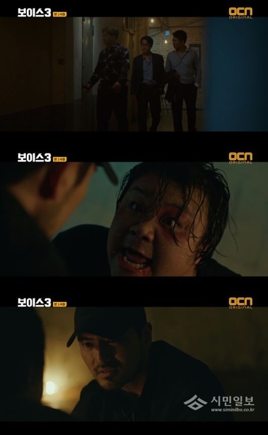 23일 방송된 OCN 토일드라마 '보이스3' 14화에서는 도강우(이진욱 분)이 카네키 마사유키(박병은)의 뒤를 밟았다. 이날 도강우는 마사유키가 강권주(이하나)의 병실에 들렀다 나오자 그의 뒤를 쫓아 풍산 병원 지하 주차장으로 들어갔다.