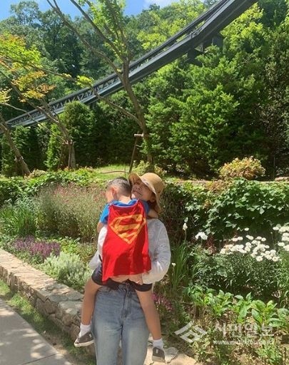 한지민은 23일 자신의 인스타그램에 "날아라 슈퍼맨"이라는 글과 함께 "#sunday #nephew #조카스타그램" 해시태그와 사진을 게재했다.