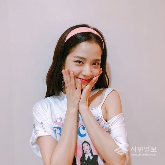 공개된 사진 속에는 지수가 블랙핑크 멤버들의 모습이 프린팅된 티셔츠를 입고 턱받침 포즈로 카메라를 바라보고 있다. 살짝 고개를 돌리고 미소 짓는 지수의 모습이 상큼함을 자아낸다.