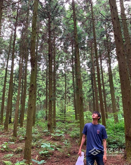 사진 속 광희는 숲길을 걸으며 힐링을 하고 있다.