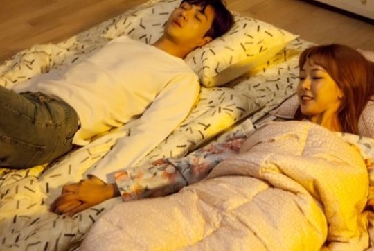 잠옷을 입고 잠잘 준비를 마친 이지윤과 달리, 오진규는 손발이 꽁꽁 묶인 채 쭈그려 앉아 있는 모습. 이지윤을 바라보는 오진규의 표정에서는 억울함과 황당함이 공존한다. 반면 이지윤은 태연하게 말을 걸고 있다.