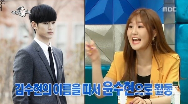 이날 윤수현은 "본명은 윤지연"이라며 "제가 데뷔할 당시에 SBS '별에서 온 그대'가 한참 핫할 때라 배우 김수현의 이름을 따서 윤수현이 됐다"고 밝혔다.
