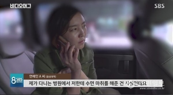 이날 '8뉴스'는 연예인 A씨에게 해당 병원에서 프로포폴을 불법 투약 의혹을 물었으나 A씨는 "제가 다니는 병원에서 해준 건 맞지만, 제가 마취를 더 해달라고 하거나 그 주사액을 놓아달라고 한 적은 없다"며 합법적 수면마취라 주장 중인 것으로 알려졌다.