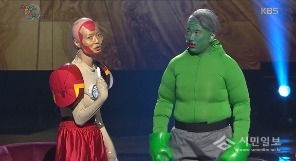 이날 헐크로 변신한 정경미는 "녹색 어머니회 다녀왔다. 너무 급해서 바로 왔다"고 말해 웃음을 자아냈다.