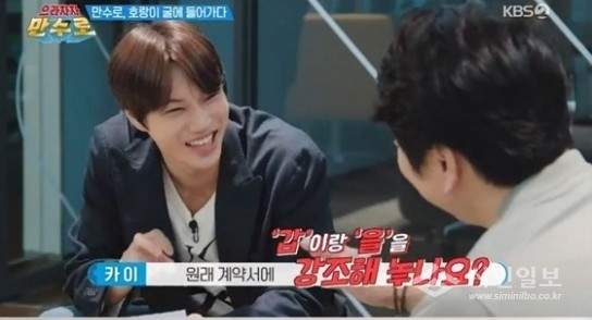 카이는 계약을 진행하며 "저 엄마가 계약 이렇게 하지 말라고 했는데"라며 고개를 갸웃했고, 김수로는 "엄마한테 얘기하지 마"라고 답해 폭소를 자아냈다. 이에 카이는 웃음을 보이며 "떳떳한 거 아닌가요?"라고 장난스레 물었고, 김수로는 "떳떳해 질거야. 근데 지금은 엄마한테 얘기하지 마"라고 얘기했다.