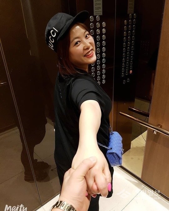 사진에는 김원효의 손을 잡은 채 뒤를 돌아보고 있는 심진화의 모습이 담겨있다. 여전히 신혼처럼 꿀이 떨어지는 모습이다.